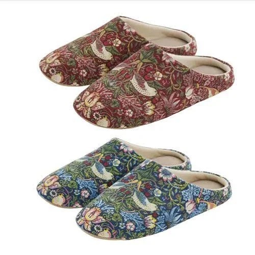 足元を華やかに彩る【いちご泥棒】をあしらったオシャレなルームスリッパ。